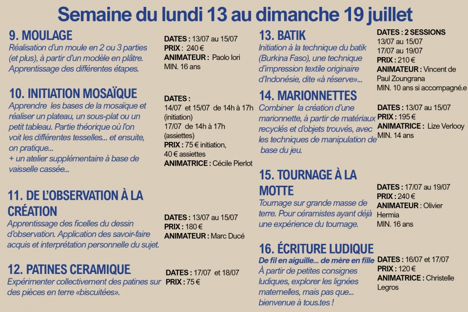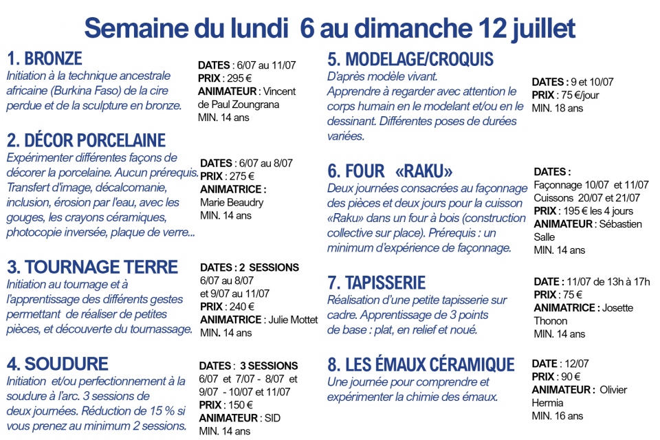 Programme de nos stages d'été (juillet 2026)
