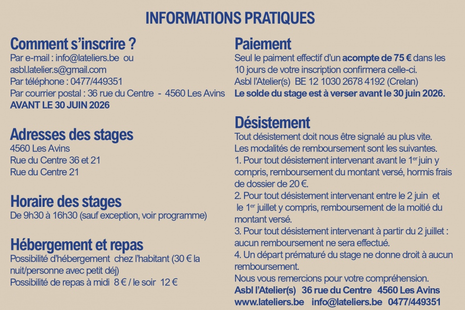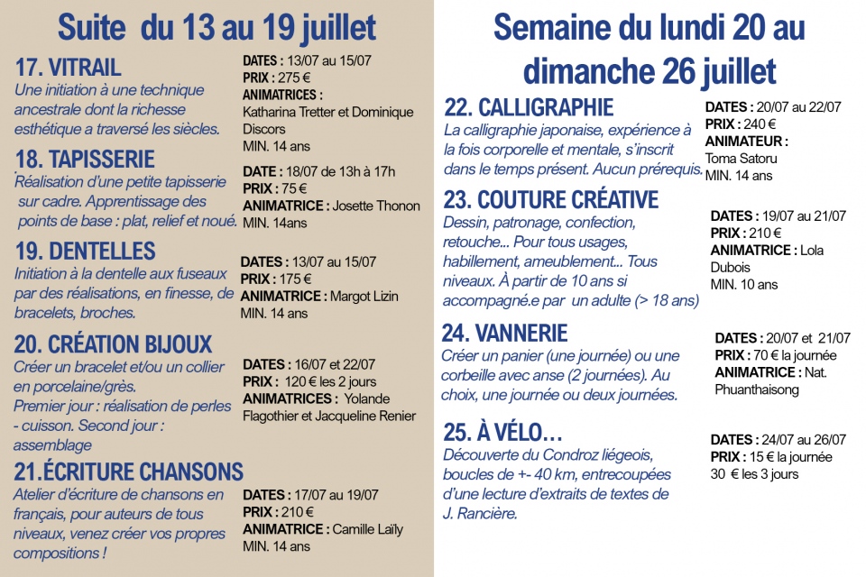 Programme de nos stages d'été (juillet 2026)